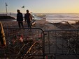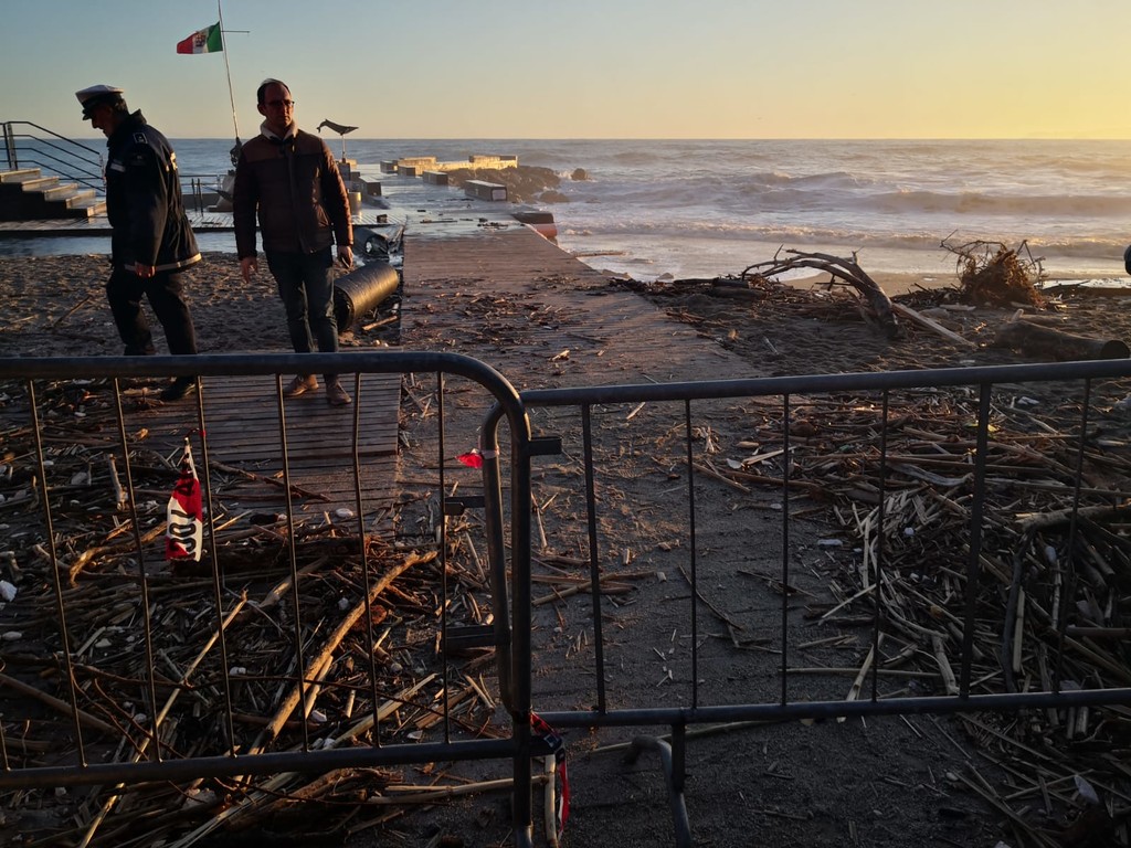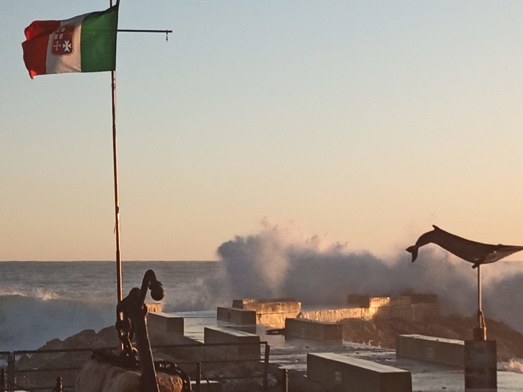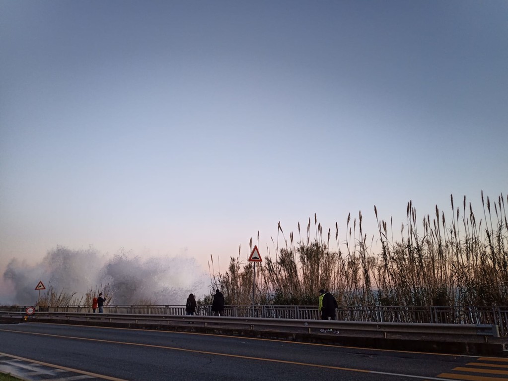 A causa delle forti onde la Polizia Municipale ha bloccato l'accesso al molo con transenne