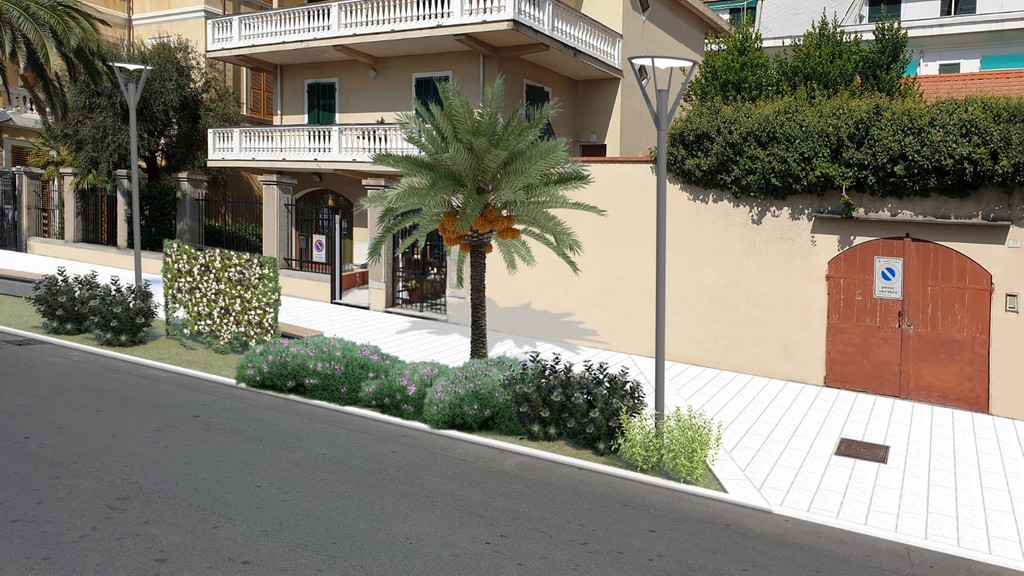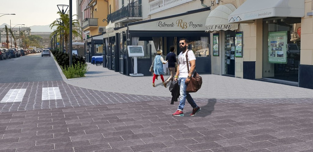 1) il marciapiede che non rappresenterà una continuità con il lungomare ma verrà realizzato creando una stretta correlazione con le realtà prospicienti, rivalutando i dehors e le emergenze architettoniche di pregio (facciate).