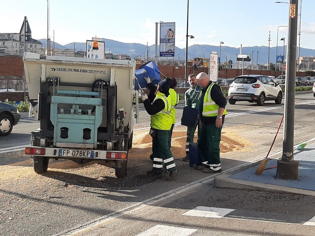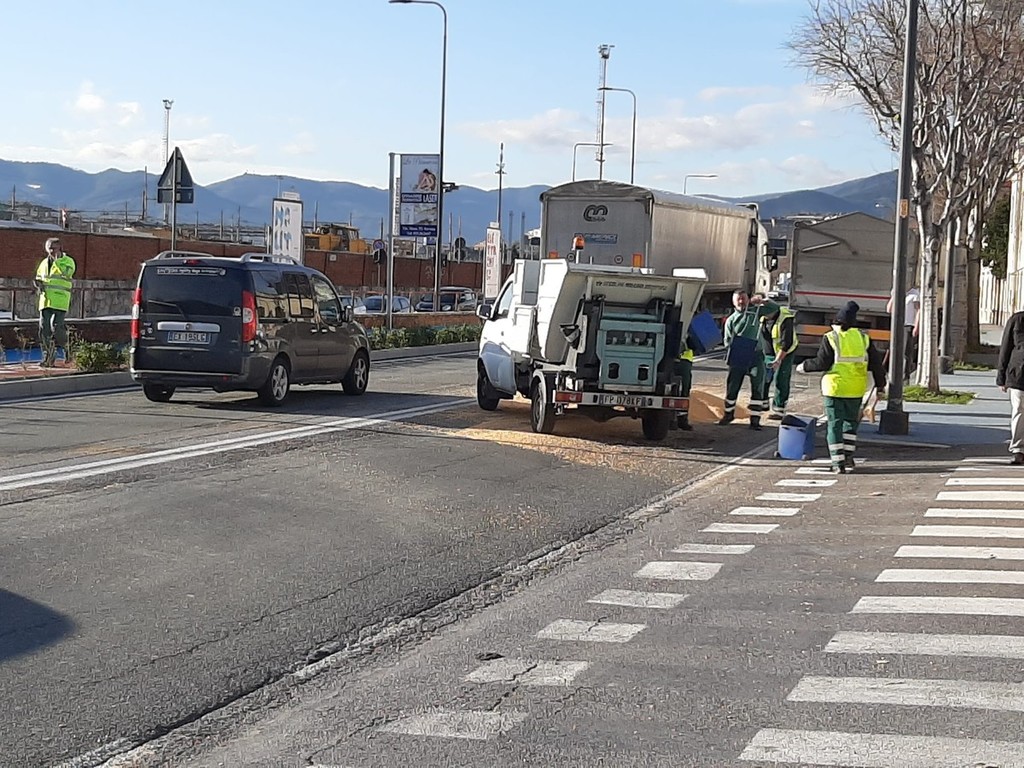 Disagi alla viabilità questa mattina a Savona. Secondo quanto riferito, un camion ha perso il carico, pare mais, lungo la carreggiata in via Stalingrado.