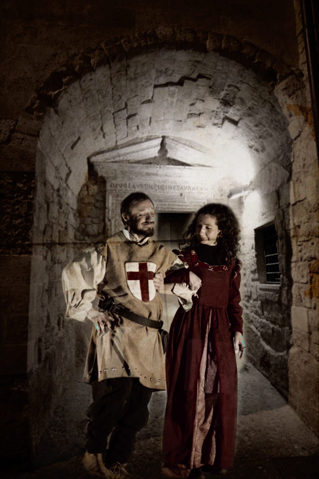 Nelle foto: i novizi sposi Enrico Del Carretto e Caterina Clavesana: Alessandro Oliveri e Cristina Peruzzi. Sebastiano che parla con il soldato della Repubblica: Marco Serra e Gianluca Messina.