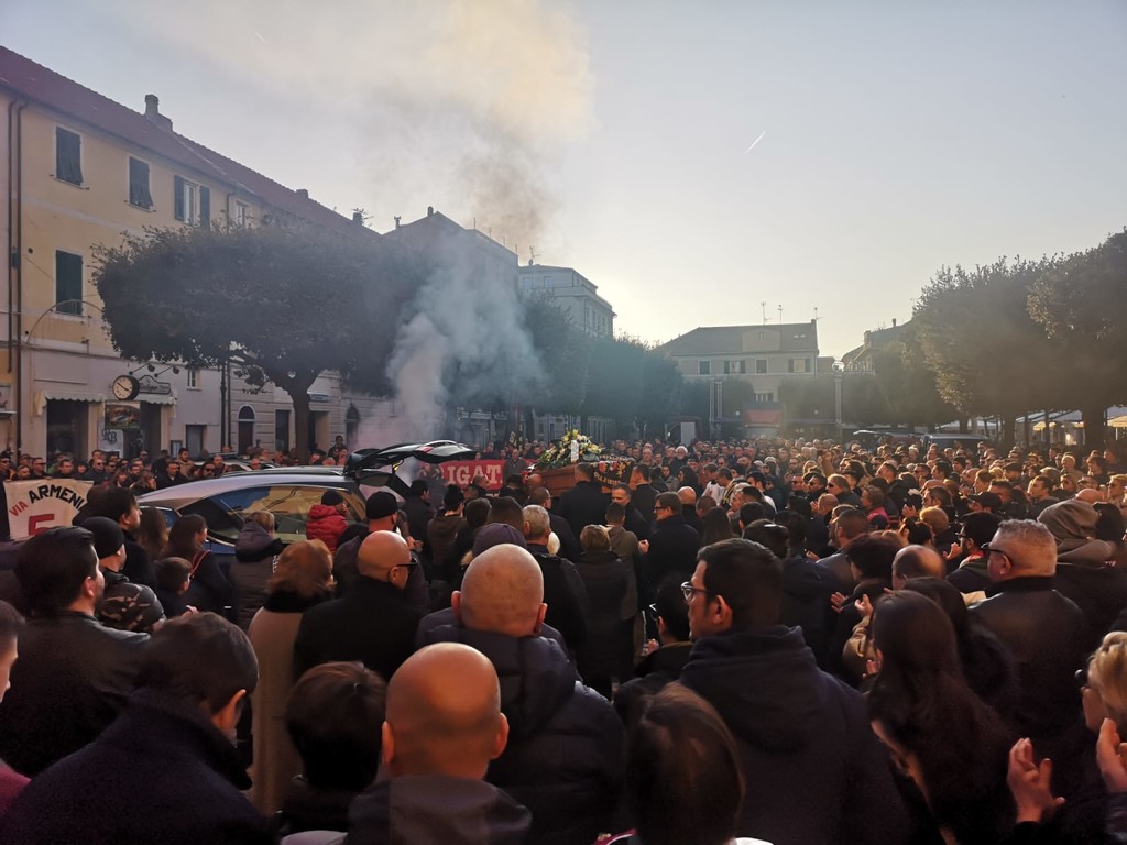 Basilica e piazza gremitissime per l'ultimo saluto al tre volte campione mondiale di kickboxing ed ex difensore del Pietra Calcio. Massiccia presenza da parte del mondo del tifo organizzato genoano
