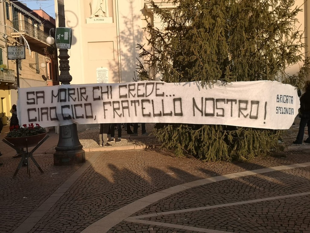 "Ciao fratello": uno striscione in piazza a Pietra Ligure per dire addio al "guerriero" Cico Zerbini
