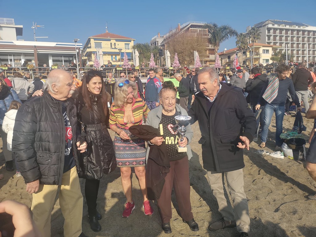 Erano 290 i coraggiosi che si sono riuniti questa mattina in spiaggia per partecipare alla 27^ edizione de "L'Ürtima Ciumba", il cimento invernale di Pietra Ligure. Un pallido sole e un mare abbastanza calmo hanno così fatto da scenario al tuffo dei temerari bagnanti, organizzato come di consueto dai bagni Giardino.