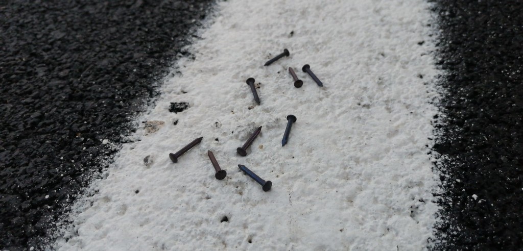 Brutta sorpresa, lungo la via Aurelia nel tratto tra Spotorno e Noli, per gli amanti del ciclismo su strada: diversi chiodi infatti sono stati trovati sulla sede stradale, in particolare sopra la linea bianca che delimita la carreggiata.