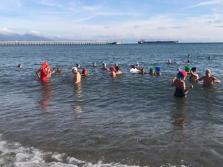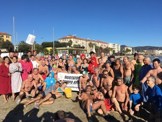Sono stati circa 80 i "coraggiosi" iscritti che questa mattina non si sono fatti scoraggiare dalle temperature rigide di questi ultimi giorni e si sono buttati per la classica "ciumba" nel mare di Vado Ligure per la 6ª edizione del Cimento invernale organizzato nello specchio acqueo antistante la SMS Centro Nautico Vadese.