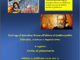 "Dal rogo di Giordano Bruno all’abiura di Galileo Galilei. Filosofia, scienza e inquisizione".