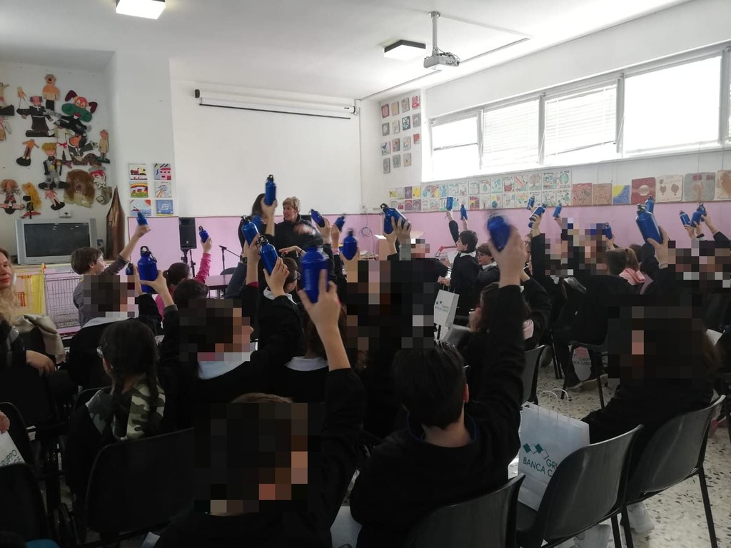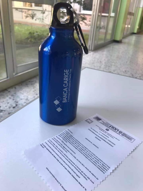 "Come Dirigente dell'Istituto Comprensivo "G.Marconi" — Savona 4, porgo un sentito ringraziamento, alla Banca Carige, per questa bellissima iniziativa legata al progetto 'Plastic free, per un futuro sostenibile" che ha permesso di raggiungere un obiettivo importante: la consegna di una borraccia per sostituire le bottigliette monouso che ogni giorno gli alunni portano a scuola; usandola consumeranno meno plastica, contribuendo a salvare il nostro mare e il nostro ambiente. Si tratta di un messaggio ambientale forte legato sia ai contenitori riutilizzabili, sia all'uso dell'acqua di rete. Meno plastica , infatti, significa meno inquinamento - afferma la Prof.ssa Rita Moretti Dirigente Scolastico".