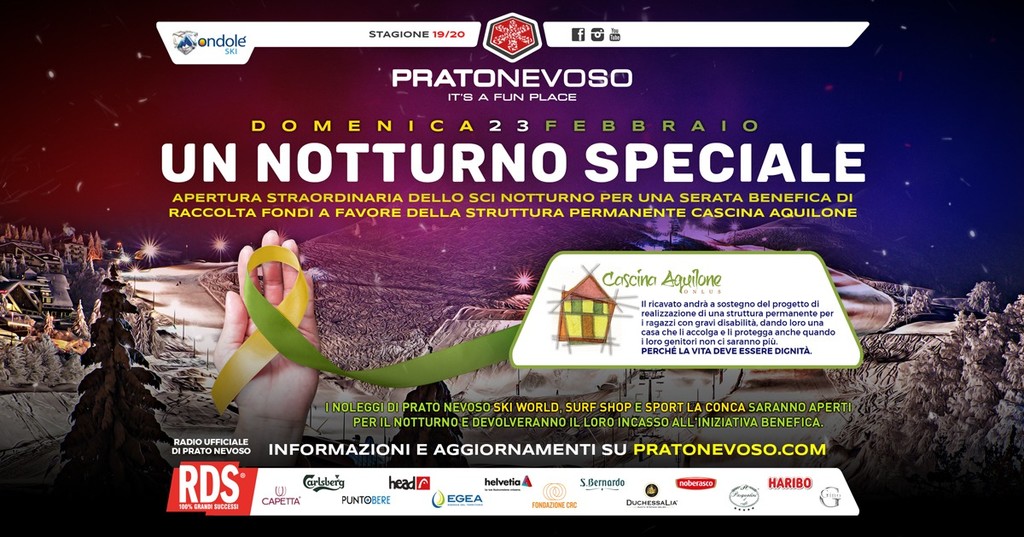 Ora i promotori di Cascina Aquilone hanno individuato un edificio a Castagnole delle Lanze, dove le colline delle Langhe diventano Monferrato, che va ristrutturata e adeguata per offrire ai ragazzi della comunità un posto sicuro dove essere “grandi” lontano dai genitori. Per questo servono fondi. Per questo un’iniziativa come il notturno speciale di Prato Nevoso – dove già si scia di notte il martedì, venerdì e sabato – è quel che serve: raccogliere contributi per dar forma alla cascina dell’Aquilone. Sarà un notturno davvero speciale.