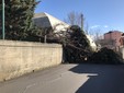 A causa del forte vento, un pino è crollato sulla sede stradale in via Tecchio. La caduta dell’albero ha provocato anche la rottura di un palo della luce.