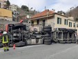 Autoarticolato si ribalta a Montemoro, sulla provinciale del Cadibona. Illeso l'autista (FOTO E VIDEO)