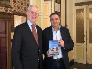 In verità è stato proprio Alan Fridkin a consegnare un graditissimo ricordo ad Angelo Galtieri. Giornalista e scrittore freelance ha infatti affidato alle mani del vicesindaco e assessore al turismo del Comune di Alassio una copia di "A Ligurian Odyssey" in cui ha saputo trasferire tutto il suo amore per la città di Alassio e per le persone che lo hanno accolto in tutti questi anni.