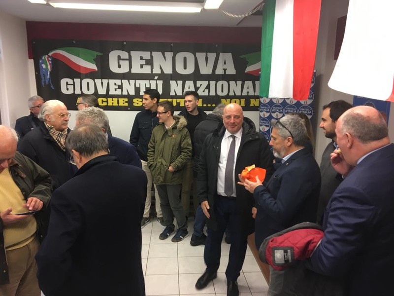 Genova - Parte dall'inaugurazione della nuova sede di Fratelli d'Italia e di Gioventù Nazionale (l'organizzazione giovanile del partito) in via della Libertà a Genova la campagna elettorale per le prossime regionali di Augusto Sartori, capogruppo in Consiglio Regionale per la formazione politica guidata da Giorgia Meloni.