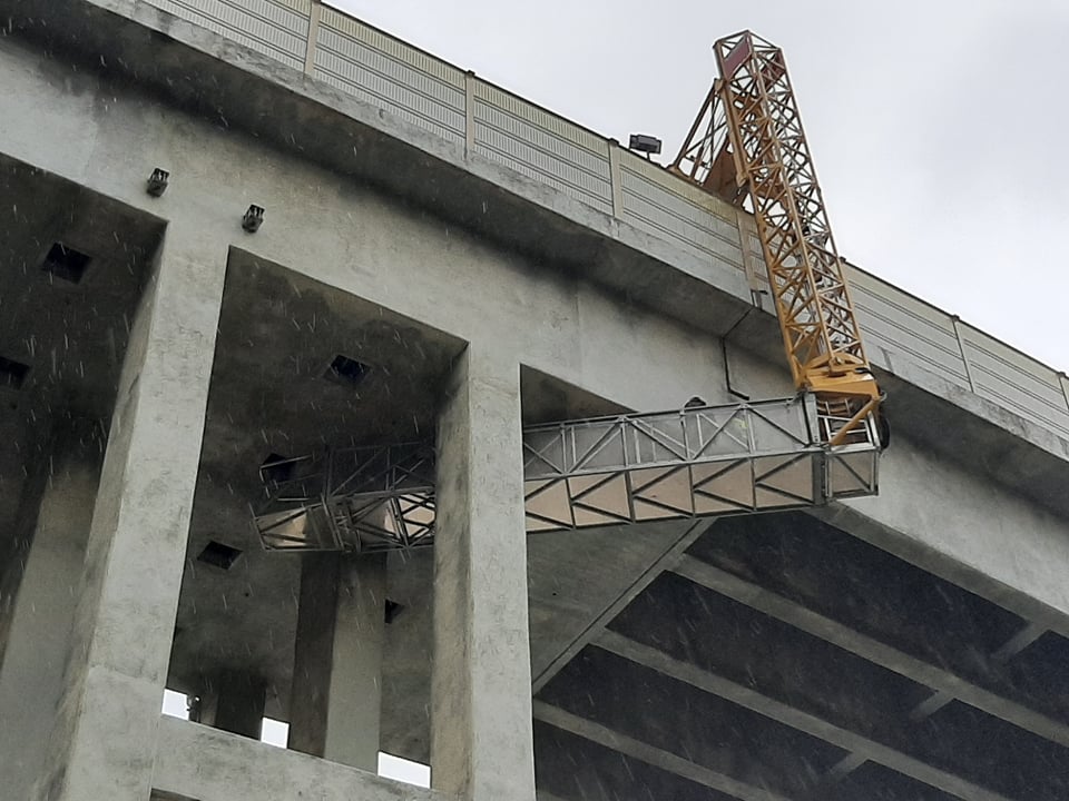 Gli operai sono quindi ritornati al lavoro con il carroponte, dopo gli allarmi lanciati per la caduta costante di oggetti e di calcinacci nei pressi della bocciofila.
