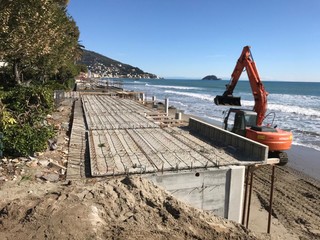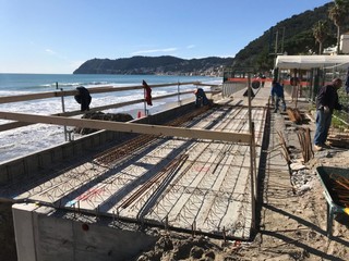 Continuano i lavori del primo dei due lotti per il rifacimento di passeggiata Ciccione. Dopo la rimozione della vecchia pavimentazione e il sopralzo del livello della passeggiata stessa, per la messa a norma delle cabine sottostanti, si sta per procedere con la posa della pavimentazione nel primo tratto.