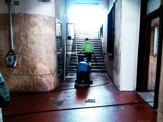Massiccia opera di pulizia e disinfezione, questa mattina, in stazione ferroviaria ad Albenga. Il personale preposto, con idropulitrici e spazzatrici meccaniche, è intervenuto in tutta la struttura: dall'ingresso, alle rampe d'accesso ai binari, fino ai binari stessi.