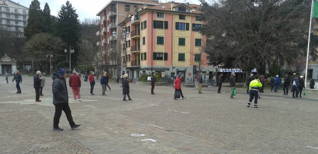 Una fila ordinata. Quasi silenziosa. Per ritirare le ricette relative alle terapie croniche. Come riportato dalla nostra redazione, il poliambulatorio Cairo Salute ha aperto un nuovo punto di distribuzione presso il portico dell'anfiteatro del Palazzo di Città, in corrispondenza dell'accesso al Teatro comunale.