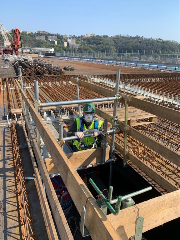 “L’abbiamo sempre sostenuto: se non si riescono a rispettare le disposizioni previste dal decreto si possono anche sospendere i lavori, non è certo un problema ritardare di qualche settimana la consegna del Ponte. L’opera – spiega il sindacalista della Filca - ha un fortissimo valore simbolico, ma questo luogo è purtroppo associato ad un evento drammatico e luttuoso, il crollo del 14 agosto 2018. Non si possono tollerare altre vittime, altri lutti. Tra le misure adottate per i lavoratori impiegati, che a breve saranno 300, a fronte dei 650 a regime, ci sono la fornitura di DPI a norma, la presenza fissa di un medico, la misurazione della febbre con termometro laser a distanza, la vigilanza nei luoghi comuni, come la mensa, la sanificazione di tutti i locali frequentati dai lavoratori. In caso di febbre o contagio è previsto l’isolamento in apposite camere già allestite all’interno del campo base. Per i lavoratori, oltre ai tamponi, è prevista la possibilità di effettuare il Covid test, un'analisi rapida che in circa 15 minuti fuga ogni dubbio su una possibile positività al virus. Infine è stato eliminato il turno di notte".