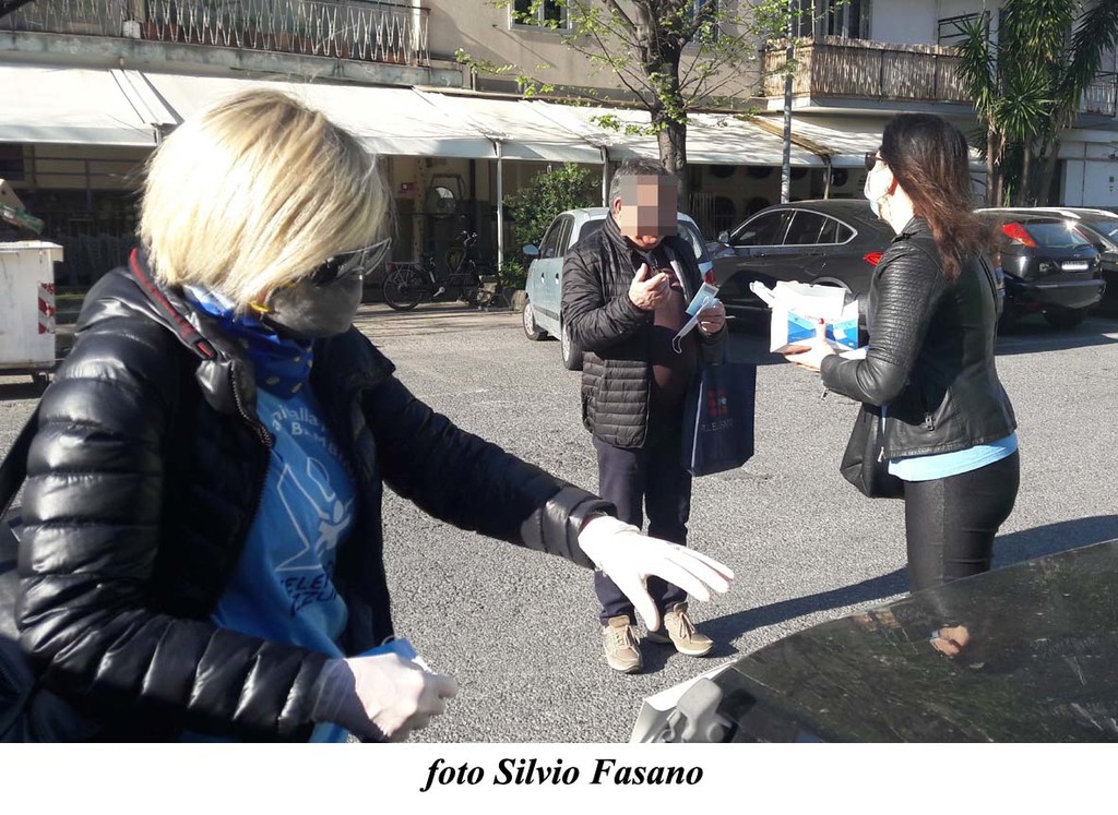 Gli albenganesi che attendevano di entrare nei supermercati (quelli senza mascherina) hanno trovato la gradita sorpresa dei volontari che li hanno muniti del dispositivo.