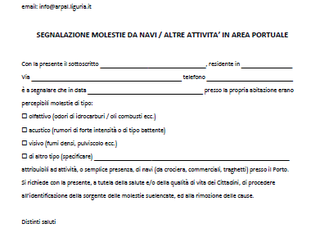 Nel modulo è richiesto di compilare se ci sono problemi olfattivi (odori di idrocarburi/oli combustibili), acustici (rumori di forte intensità o di tipo battente), visivi (fumi densi, pulviscolo) o di altro tipo.