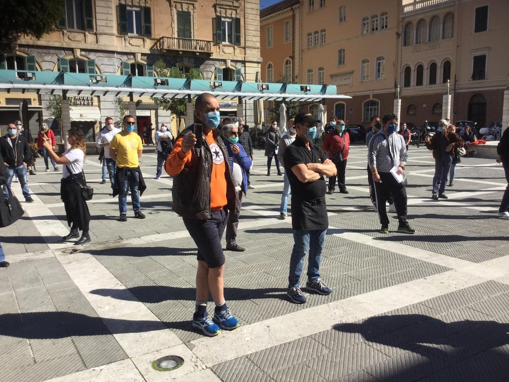 I titolari di bar, ristoranti, negozi sono scesi nella centrale piazza savonese per protestare dopo quasi due mesi di chiusura a causa dell'emergenza Coronavirus.