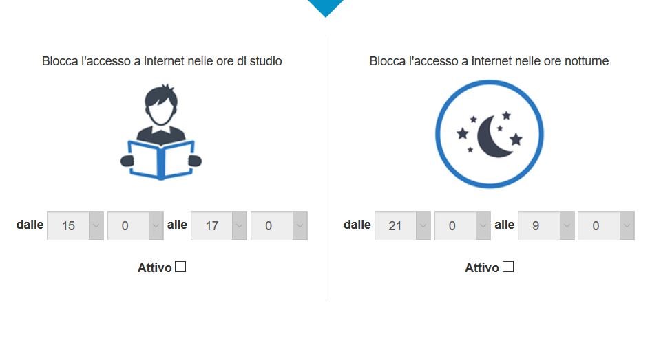 È possibile inoltre impostare due fasce orarie in cui l’apparato non permetterà di navigare al bambino ricordandogli invece che deve studiare oppure è orario di dormire. In basso vediamo come è possibile configurare le fasce orarie.