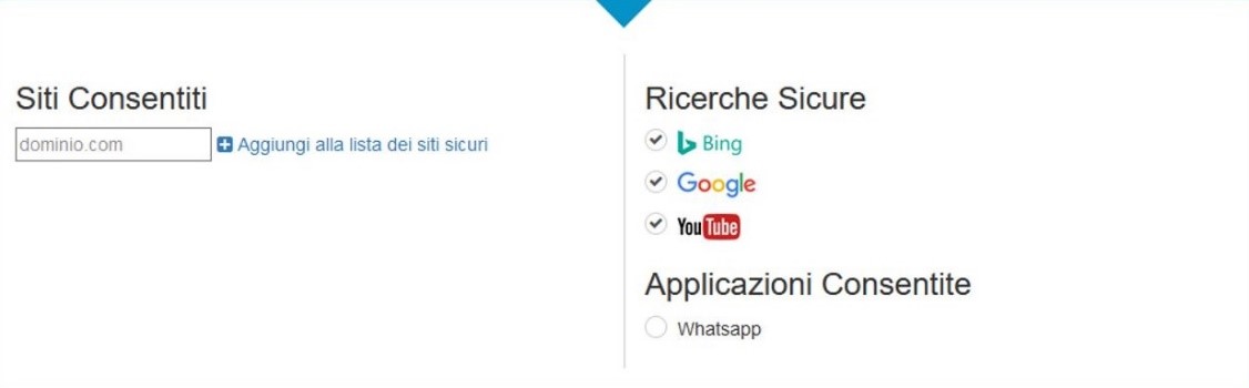 Infine, sarà possibile anche inserire delle eccezioni inserendo dei portali web che non dovranno essere bloccati come vediamo nella foto in basso. Alcuni, come i motori di ricerca Google Bing e YouTube, sono abilitati di default ma possono anche essere esclusi togliendo il relativo flag.