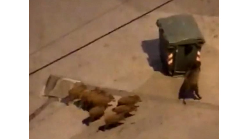 Il filmato è stato girato, pare nell'hinterland del comune di Savona (ma ci sono versioni contrastanti) e vede un branco di cinghiali, rappresentato da un giovane esemplare femmina e almeno otto cuccioli, che cerca di ribaltare un cassonetto della spazzatura in cerca di cibo.