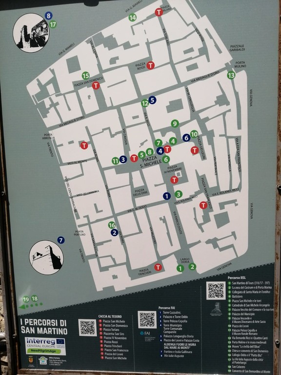 Tra gli altri, la creazione di itinerari tematici - visualizzati su pannelli installati nel centro cittadino - che grazie a QR code guideranno le persone alla scoperta del patrimonio artistico-culturale ingauno e i bambini in una caccia al tesoro sulle tracce di San Martino; la creazione di una nuova postazione dedicata a San Martino e al suo legame con l'Isola Gallinara presso il Fortino Genovese.