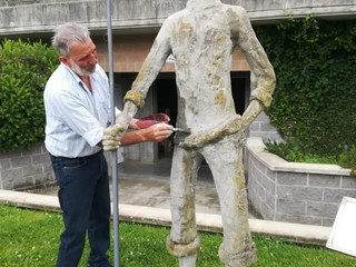 Il noto maestro scultore ed intagliatore Corrado Cacciaguerra, presidente dell’Associazione Artisti Varazzini ieri, mercoledì 3 giugno 2020, con l’aiuto di due suoi abili e disponibili allievi G. Fazio e G. Cerruti (Ranghetto & Cantunè), ha nuovamente ripristinato e dotato di regolamentare pipa “Il pescatore”, la statua dedicata a “u caian”, che si trova nel porto turistico Marina di Varazze.