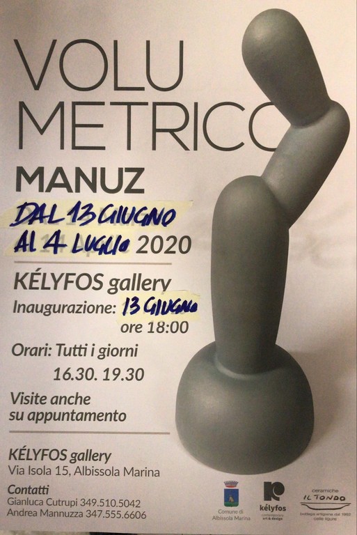“Volumetrico” è il titolo della mostra delle ceramiche di Manuz che si inaugura sabato 13 giugno 2020 alle ore 18 alla Kélyfos Gallery di Gianluca Cutrupi. E' un segno che anche la cultura e l'arte, nonostante le difficoltà, vogliono dare il loro contributo importante alla ripresa delle attività del territorio dopo il lungo periodo di lockdown. La mostra di Manuz, patrocinata dal Comune di Albissola Marina, si terrà alla Kélyfos gallery dal 13 giugno al 4 luglio, con orario dalle 16,30 alle 19,30 tutti i giorni e con visite anche su appuntamento in orari su richiesta. MANUZ Andrea Mannuzza nasce a Savona nel 1982, frequenta la bottega del padre, le Ceramiche Il Tondo di Celle Ligure, fin da ragazzino e dopo aver frequentato il liceo artistico, nel 2003 inizia l’attività del ceramista a pieno ritmo.