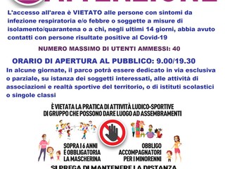 "Fondamentale sarà comunque la collaborazione e il supporto in generale di tutti i fruitori ed in particolare dei genitori o degli adulti che accompagneranno i bambini. Buon gioco in relax ed in sicurezza a tutti" conclude l'assessore.