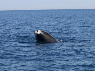 'Codamozza', la balenottera mutilata della coda, ma piena di voglia di vivere nonostante un pesante handicap quasi sicuramente causato dall’uomo, continua a viaggiare nel Santuario dei Cetacei.