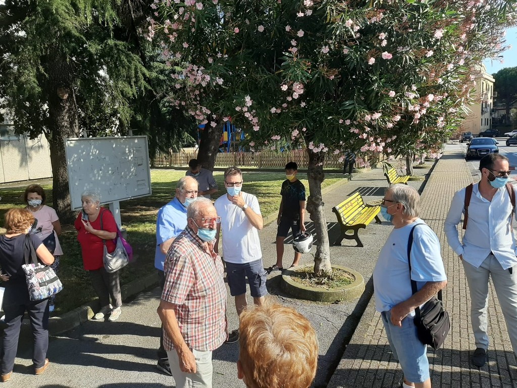 L'opera, donata gratuitamente al comune, è stata svelata in via alla Massa ai cittadini dall'artista e da Fabio Fazio ospite d'onore dell'inaugurazione.