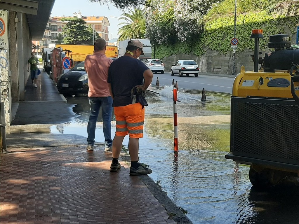 Si rompe un tubo dell'acqua in via Pirandello e la strada inizia ad allagarsi.