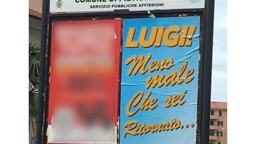 "Luigi! Meno male che sei ritornato...". È questo il messaggio che campeggia su alcuni manifesti comparsi nella giornata odierna a Pietra Ligure. Destinario del pensiero è il sindaco Luigi De Vincenzi, così come accadde già nell'ottobre del 2018 quando per le vie pietresi vennero affissi dei cartelli con la scritta “Luigi, vogliamo il tuo ritorno!”.