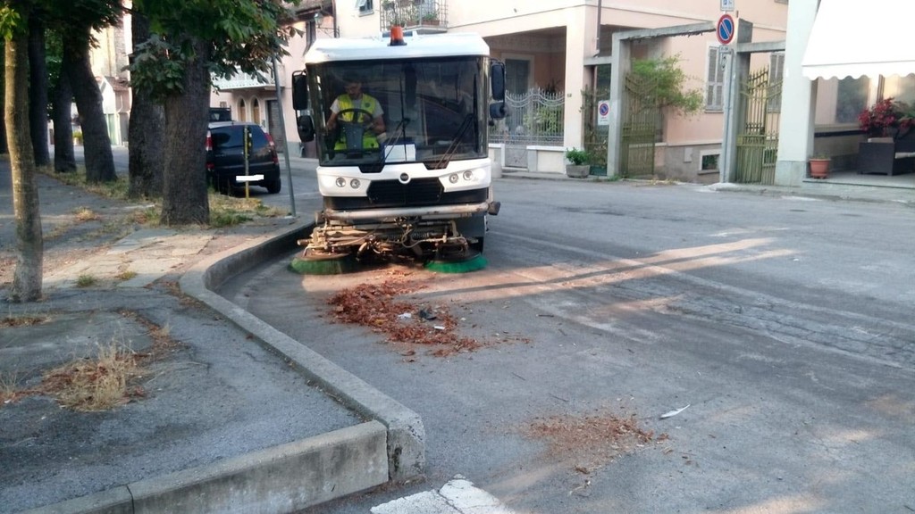 Primo ciclo di pulizia straordinaria ed intensiva di strade e marciapiedi comunali con l'ausilio di spazzatrice stradale.