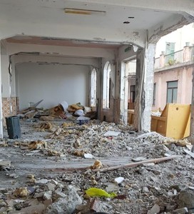 L'edificio, riconoscibile per il suo inconfondibile colore rosa, come da convenzione non verrà ricostruito.