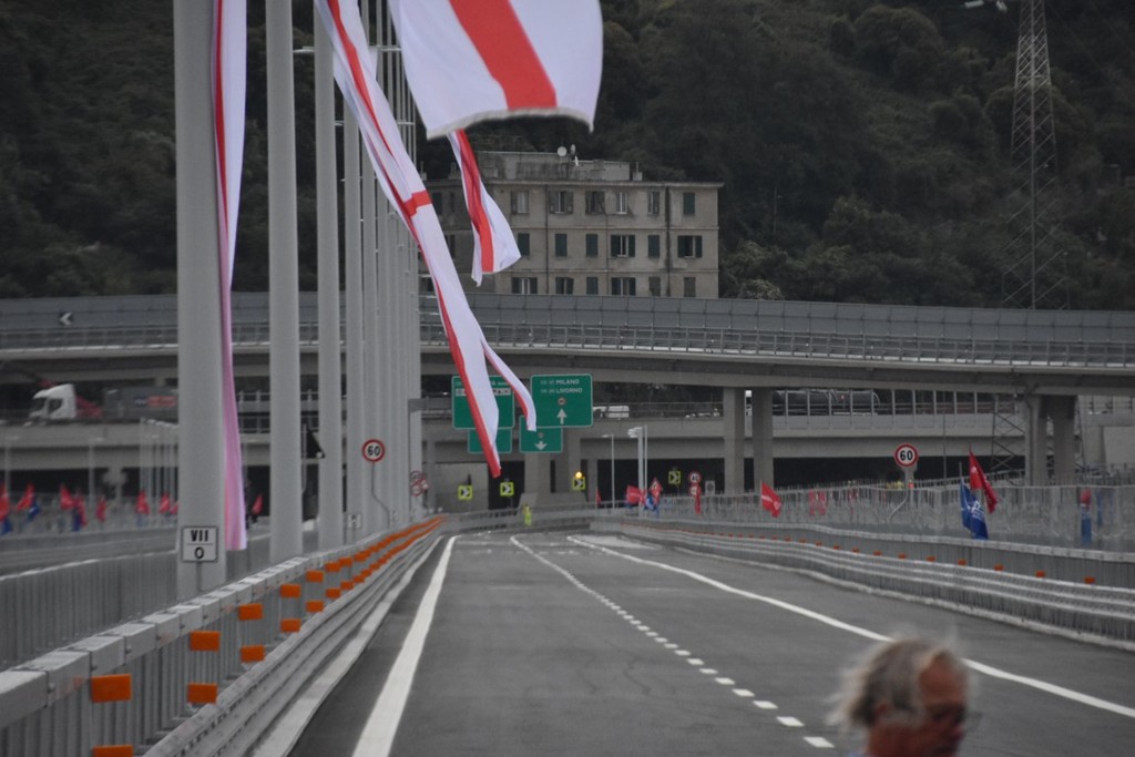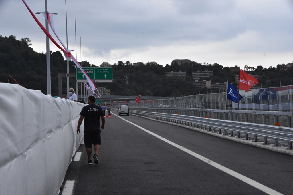Per l'apertura della cerimonia è prevista la lettura dei nomi di ognuna delle 43 vittime del crollo del Ponte Morandi. Al termine di questo simbolico momento seguiranno tre minuti di silenzio. Subito dopo sarà il momento degli interventi delle autorità e infine il taglio del nastro.