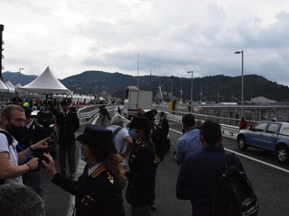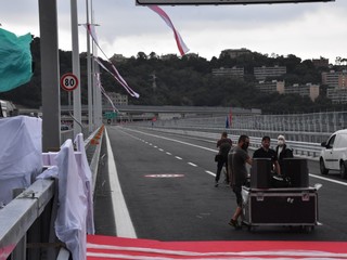 AGGIORNAMENTO ORE 16.50 - Nonostante la pioggia stia concedendo una piccola tregua inizia a farsi strada l'attuazione del 'Piano B', annunciato dal commissario Bucci per lo svolgimento della cerimonia in caso di maltempo. Nel caso la pioggia rendesse di fatto impossibile svolgere la cerimonia all'aperto, nel bel mezzo del ponte, agli ospiti è stato consigliato di spostarsi all'interno della galleria che precede il ponte San Giorgio lato ponente. Il tunnel di protezione predisposto può infatti contenere al massimo un centinaio di persone, assolutamente non adeguato a ospitare la totalità degli addetti ai lavori presenti.