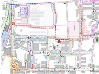E' presente inoltre un ulteriore collegamento tra la viabilità comunale superiore (via del Levantino) ed inferiore (via dei Gervasio) al lotto in corrispondenza del lato occidentale dello stesso, destinata alla mobilità pesante di carico e scarico merci a favore del fabbricato e, segnatamente, si avrà l’ingresso al lotto dalla via dei Gervasio e l’uscita sulla via del Levantino.