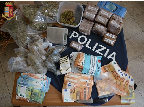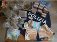 Trovati dalla polizia anche 18 cartucce, 2 coltelli ed altro materiale specificatamente utilizzato per la confezione di dosi oltre a 19mila euro in contanti