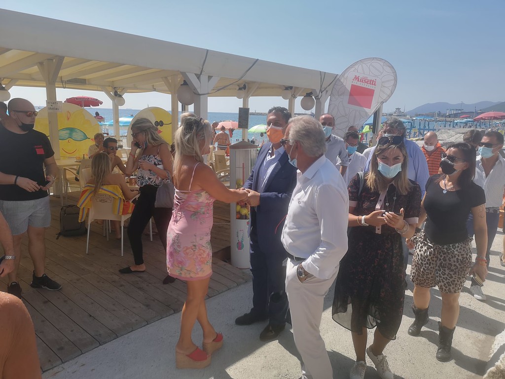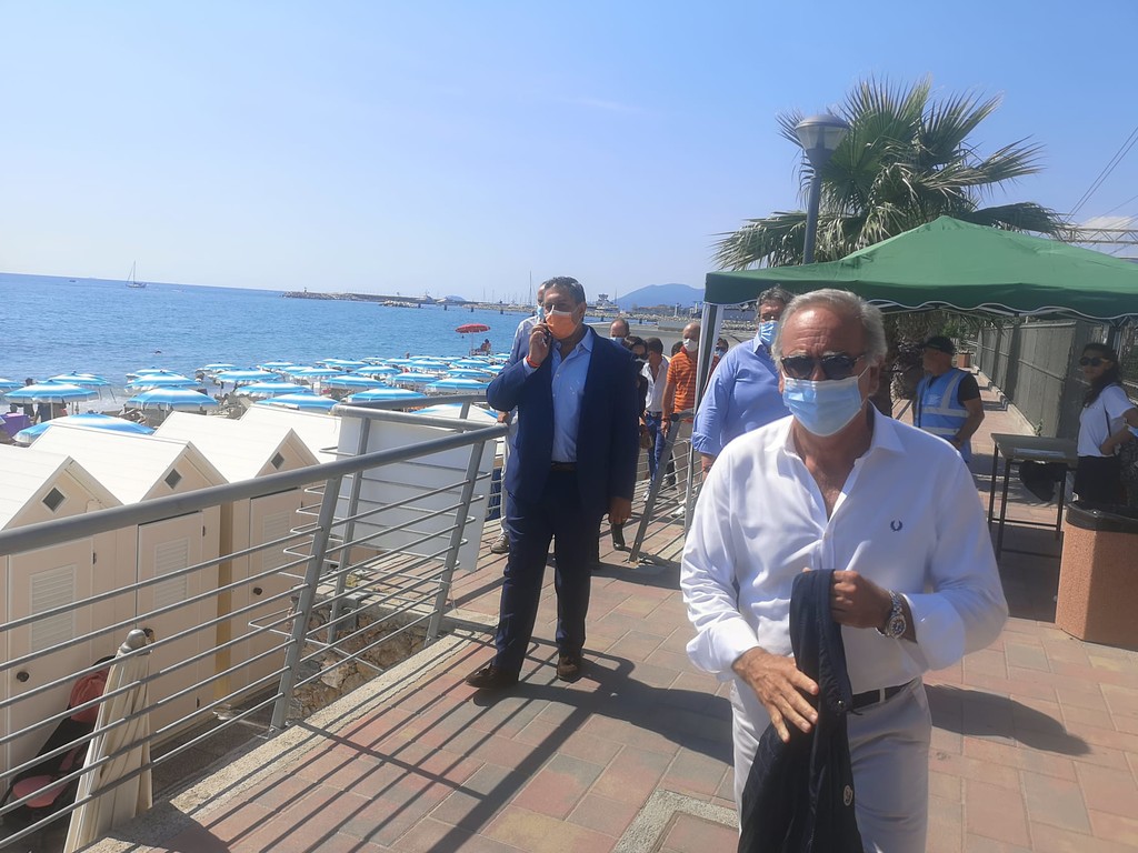 Dopo il passaggio sul lungomare di ponente, dove non sono mancati gli attestati di stima di numerosi cittadini e turisti presenti sulle spiaggia, Toti si è poi spostato allo stadio "Devincenzi" di Pietra Ligure dove è stato recentemente installato il nuovo manto in erba sintetica.