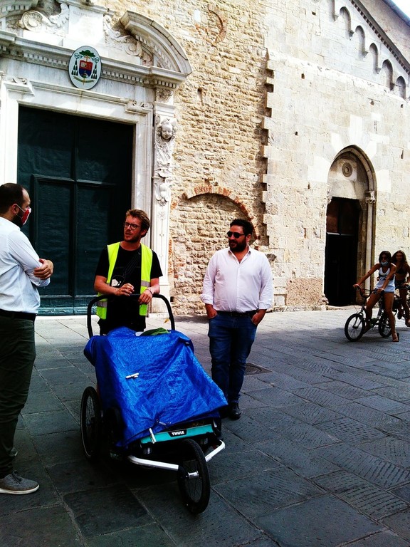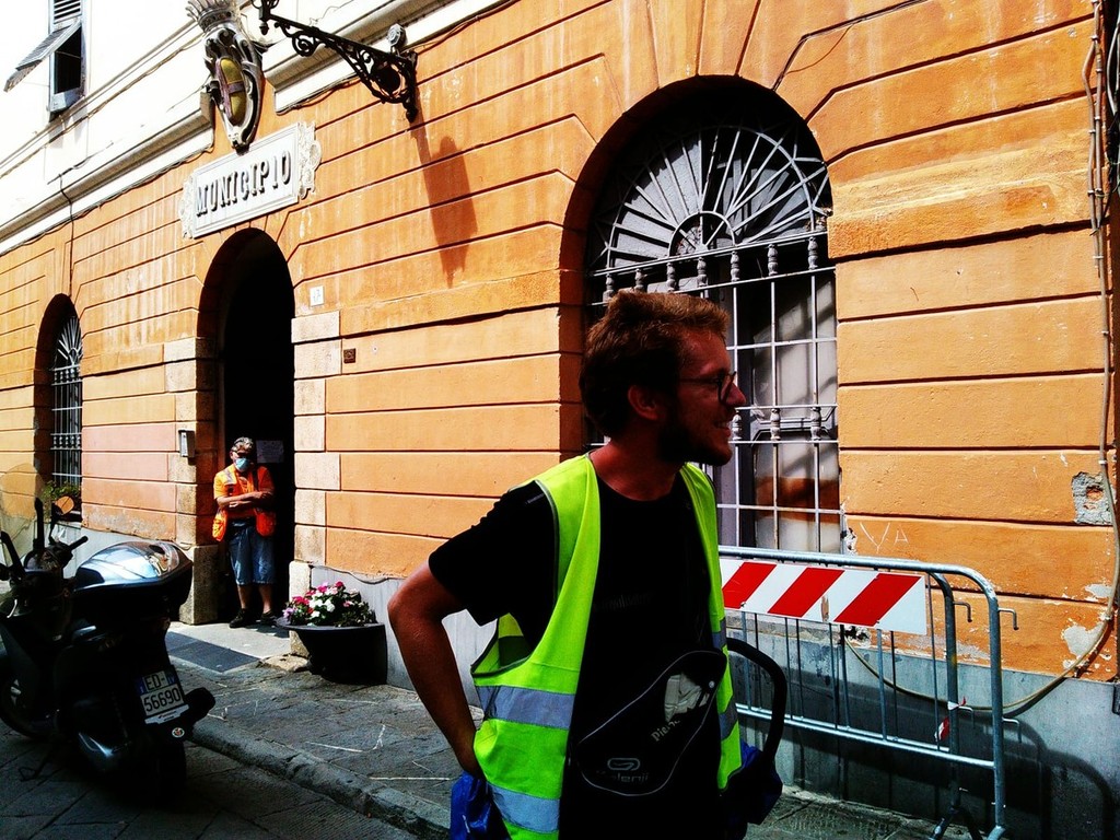Nella loro tappa albenganese, Nicolò e Camilla sono stati ricevuti dal consigliere comunale Raiko Radiuk che ha donato loro degli adesivi con il simpatico simbolo della tartaruga "Emys" e ha spiegato loro le finalità del progetto NewPilgrimAge.
