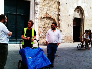 Partito il 9 agosto dal suo Comune di residenza, Malo, nel vicentino, ha attraversato parte del Nord Est italiano per poi scendere a Parma e, scavallando l'Appennino, approdare in Liguria. Oggi, 26 agosto, il suo itinerario lo ha portato all'ombra delle antiche Torri di Albenga.
