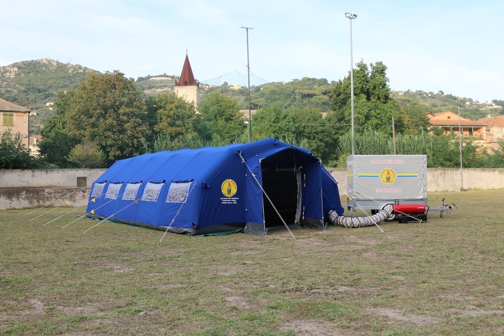 È stata inaugurata ufficialmente ieri sera, nella cornice del campo sportivo "Viola" di Finale Ligure, la tenda pneumatica entrata a far parte della strumentazione in possesso dell'associazione Aib e Protezione Civile di Finale Ligure.
