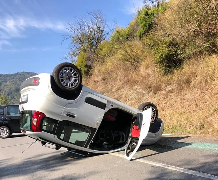 Attimi di paura questa mattina intorno alle ore 10.30 per un'automobile cappottata lungo la S.S. 334 del Sassello, nel territorio comunale di Stella. Sul posto sono intervenuti i Vigili del Fuoco e un'ambulanza della Croce Verde di Albisola.
