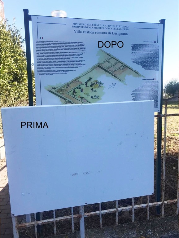 Il Comune di Albenga ha posizionato una nuova cartellonistica per valorizzare uno dei reperti romani più caratteristici ed importanti del territorio: quelli della Villa Romana sita a Lusignano.