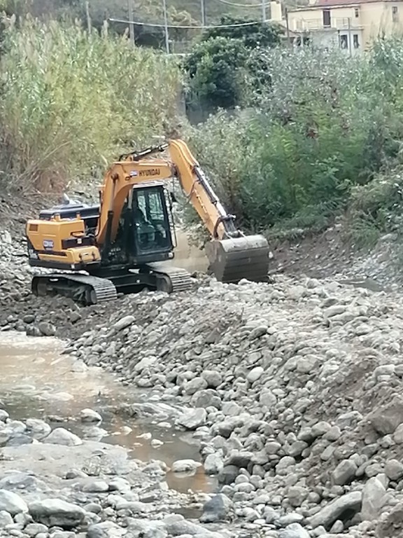 Non si fermano i lavori sul greto del Letimbro a Savona. Gli interventi stanno continuando in questi giorni tramite il lavoro della pala meccanica che sta spostando il materiale per deviare il torrente e finiranno nella borgata di Riborgo in giornata.