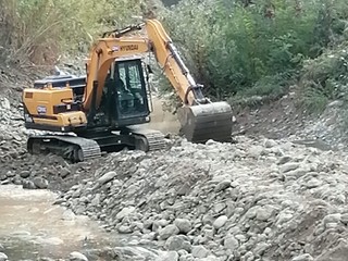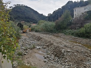 Non si fermano i lavori sul greto del Letimbro a Savona. Gli interventi stanno continuando in questi giorni tramite il lavoro della pala meccanica che sta spostando il materiale per deviare il torrente e finiranno nella borgata di Riborgo in giornata.