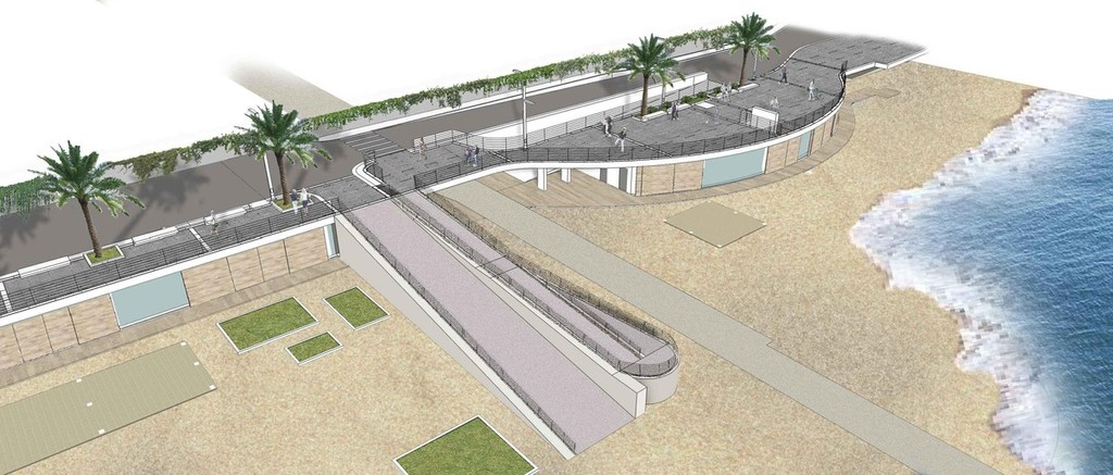 In corrispondenza dei Bagni Marina Piccola e degli ex cantieri Zunino verranno realizzati anche due prolungamenti verso il mare, che avranno funzione di belvedere. Altri elementi architettonici e funzionali (come rampe di collegamento con i sottopassi, la rampa pedonale e carrabile che verrà creata all'altezza dei Bagni Aurora, corpi scala e piattaforme elevatrici) serviranno a favorire l'integrazione e il complicato rapporto tra in due livelli.